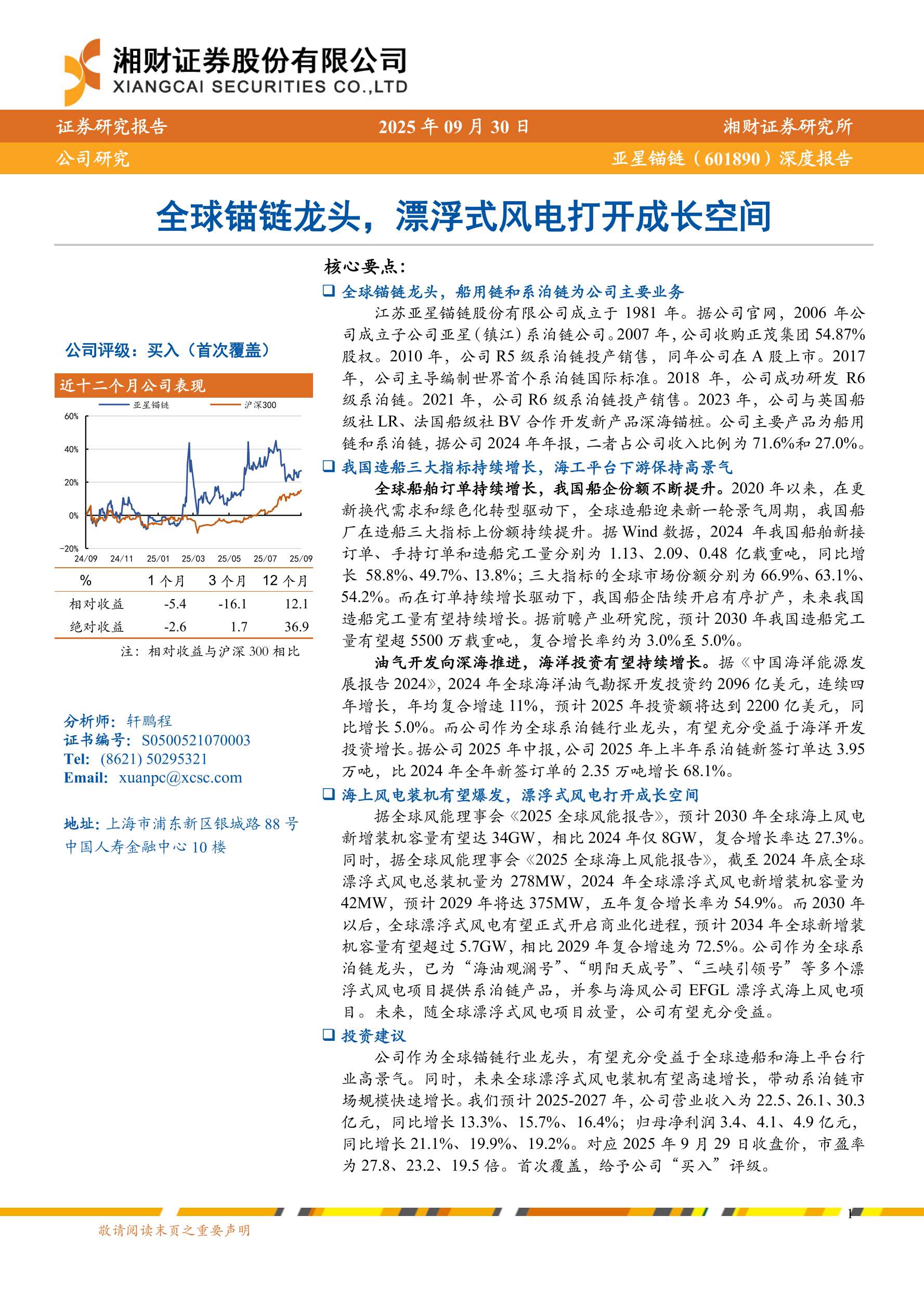 亚星锚链(601890)深度报告:全球锚链龙头,漂浮式风电打开成长空间-250930-湘财证券-27页.pdf