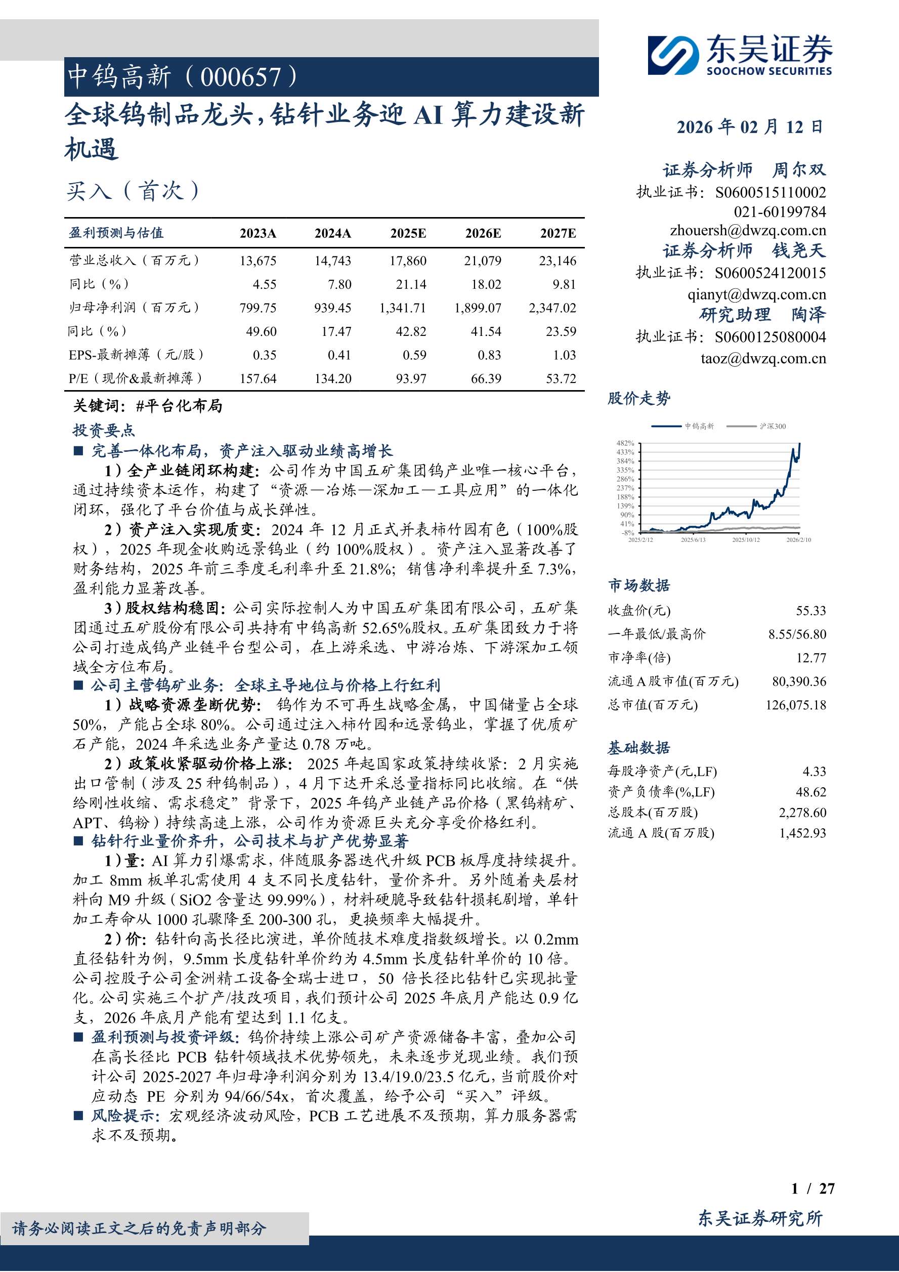 中钨高新(000657)全球钨制品龙头,钻针业务迎AI算力建设新机遇-260212-东吴证券-27页.pdf